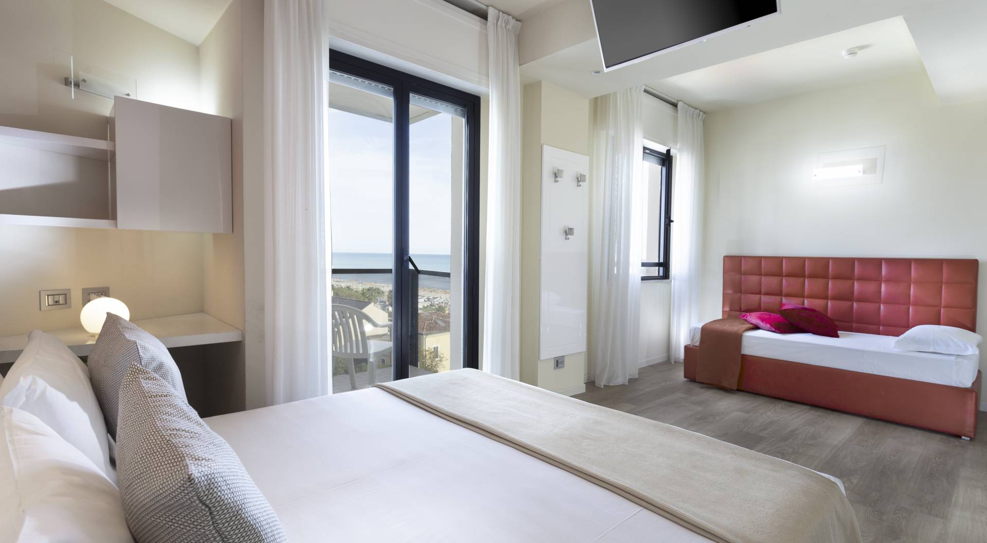 C’est ainsi que nous avons conçu nos trois types de chambres, toutes avec balcon (la plupart avec vue sur la mer), les services pour vos enfants tels que des lits avec des rails, des chauffe-biberons, baignoires, peu de lumière dans la nuit, souscrite.