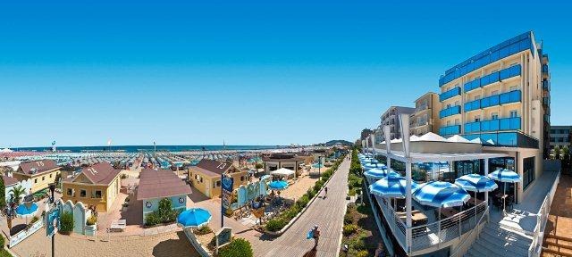 Hôtel 4 étoiles à Cattolica entièrement rénové et climatisé, caractérisé par une structure architecturale exclusive reposant sur des façades continues de miroirs et de cristaux.